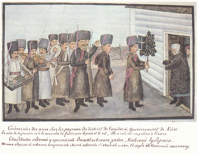 Селяни Київської губернії рідко одружуються з любові як з одного, так і з другого боку, здебільшого ж за звичкою або згідно з уявленням, що неодружений чоловік не може вступити до розряду господарів. І хоча часто трапляється так, що хлопець і дівчина, кохаючи один одного, часто зустрічаються на вечорницях 56 або перед корчмою у святкові дні, їх одруження повністю залежить од волі батьків.