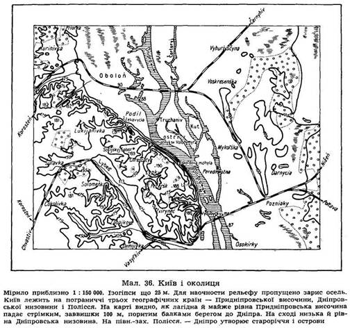 Придніпровська низовина (див. мал. 36, 37) геологічно відповідає півн.-українській влоговині. Тому що Придніпровська низовина існувала ще перед льодовиковою епохою, льодовик вибрав собі її як дорогу й тут висунувся довгим язиком вперед. Піднесення Кристалічної смуги загатило шлях водам, що спливали на південь, і вони пробивалися крізь тверді гірські породи. Через зменшення спаду Дніпро й його лівобічні притоки почали засипати долини відкладами; пробиваючись крізь них із трудом, вони діляться на рукави, творять острови, охаби, стариці. Річні заплавини вкриті пісками, які вітер часом переносить і на вищі лесові тераси, насипаючи справжні надми. Отже, краєвид над самим Дніпром має деякі познаки зандрового, чи то поліського, краєвиду. Що більше віддаляємося від Дніпра, то більше краєвид Придніпров’я стає типовим ярово-балковим.