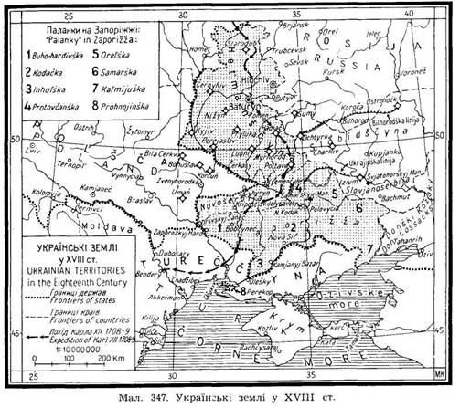Література: Антонович В. Последние времена козачества на правой стороне Днепра. Архив Юго-Западной России, III, 2. К. 1868, укр. переклад: Руська Іст. Бібліотека, XVIII. Л. 1896; Антонович В. О гайдамачестве. Архив Юго-Западной России, III, 3. К. 1876, укр. переклад: Руська Іст. Бібліотека, XIX. Л. 1897; Антонович В. Уманский сотник Иван Гонга. КСт., XI. 1882, укр. переклад: Руська Іст. Бібліотека, XIX; Скальковский А. История Новой Сечи или последнего Коша Запорожского, I — III. О. 1885 — 86; Шульгин Я. Очерк Колиивщины. КСт., II — VIII. 1890, укр. переклад: Руська Іст. Бібліотека, XX. Л. 1898; Волк-Карачевский В. Борьба Польши с козачеством во второй половине XVII в. и в начале XVIII в. К. 1899; Эйнгорн В. Сношения малороссийского духовенства с московским правительством в царствование Алексея Михайловича. М. 1899; Jablonowski A. Akademja Kijowsko-Mohilańska. Кр. 1899 — 1900; Эварницкий Д. История запорожских козаков, I — III. П. 1895, 1897, 1900; Лазаревский А. Описание старой Малороссии, I — III. К. 1888, 1893, 1902; Герасимчук В. Виговський і Ю. Хмельницький. ЗНТШ, LIX — LX; Костомаров Н. Руина. Мазепа и Мазепинцы. Собрание сочинений, VI. П. 1905, укр. переклад: Руська Іст. Бібліотека, XIV — XVIII; Ефименко А. Очерки истории Правобережной Украины. Южная Русь, І. П. 1905; Ефименко А. Из истории борьбы малорусского народа с поляками. Южная Русь, II. П. 1905: Likowski E. Dzieje Kościoła Unickiego na Litwie i Rusi w XVIII i XIX wieku, І. В. 1906; Stille A. Carl XII: s fältagsplaner 1707 — 08. Люнд 1908; Слабченко М. Малорусский полк в административном отношении. О. 1909; Барвинский В. Крестьяне в Левобережной Украине в XVII — XVIII вв. Х. 1909; Юнаков Н. Северная война. Кампания 1708 — 09 гг. Труды Императорского Русского Военно-Исторического Общества, II — IV. П. 1909; Герасимчук В. Чуднівська кампанія 1660 р. ЗНТШ, CX — CXIV, CXVI; Lipiński W. Z dziejów Ukrainy. К. 1912; Максимович Г. Деятельность гр. П. Румянцева-Задунайского по управленню Малороссией. Ніжен 1913; Харлампович К. Малороссийское влияние на великорусскую церковную жизнь. Казань 1914; Hallendorf С. Carl XII i Ukraina. Стокгольм 1915; Розенфельд И. Присоединение Малороссии к России 1654 — 1793 гг. П. 1915; Nolde B. L’Ukraine sous le protektorat Russe. Париж 1915; Каманин И. Участие южно-русского населення в восстании Б. Хмельницкого. Архив Юго-Западной России, часть III, том IV. К. 1916: Титов Ф. Русская православная церковь в Польско-Литовском государстве, I — III. К. 1905 — 16; Багалій Д. Історія Слобідської України. Х. 1918; Stille A. Taget mot Ryssland 1707 — 09. Стокгольм 1918; Липинський В. Україна на переломі 1657 — 59. Відень 1920; Тітов Ф. Стара вища освіта в Київській Україні. К. 1924; Гермайзе О. Коліївщина в світлі новознайдених матеріялів. Україна, I — II. 1924; Feldman I. Polska w dobie wielkiej wojny północnej 1704 — 09. Кр. 1925; Щербина В. Україна і рос. уряд в середині XVIII ст. ЗІФВ УАН, VI. К. 1925; Оглоблин А. Очерки истории украинской фабрики. Мануфактура в Гетманщине. К. 1925; Борщак І. Гетьман Пилип Орлик і Франція. ЗНТШ, CXXXIV — CXXXV. Л. 1925; Чубатий М. Про правне становище Церкви в козацькій державі. Богословія, I — II, III. Л. 1925; Слабченко М. Хозяйство Гетманщины в XVII — XVIII ст., I — IV. О. 1922 — 25, том IV укр. мовою, том I також в укр. перекладі О. 1923; Мякотин В. Очерки социальной истории Украины XVII — XVIII ст., I — III. Прага 1924 — 26; Василенко М. Павло Полуботок. Україна, VI. 1926; Клименко П. Місто й територія на Україні за часів Гетьманщини. ЗІФВ УАН, VII — VIII. К. 1926; Полонська-Василенко Н. З історії останніх часів Запоріжжя. ЗІФВ УАН, IX. К. 1926; Окіншевич Л. Генеральна старшина на Лівобережній Україні XVII — XVIII вв. К. 1926: Горбань М. Гайдамаччина 1750 р. Наук. Збірник Харк. Наук.-