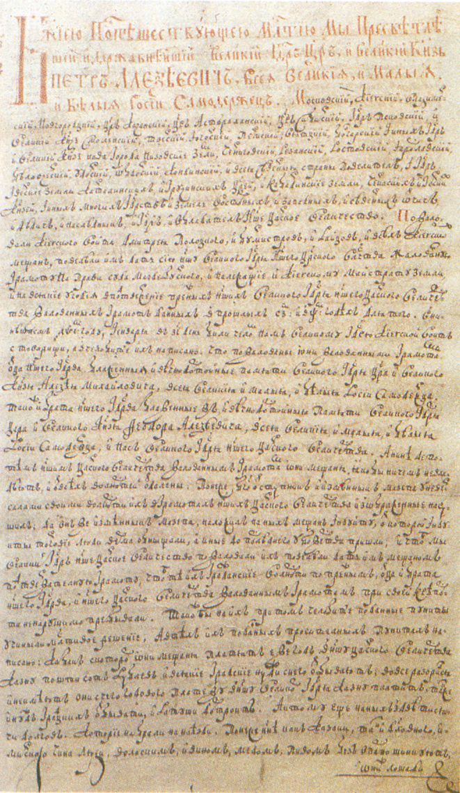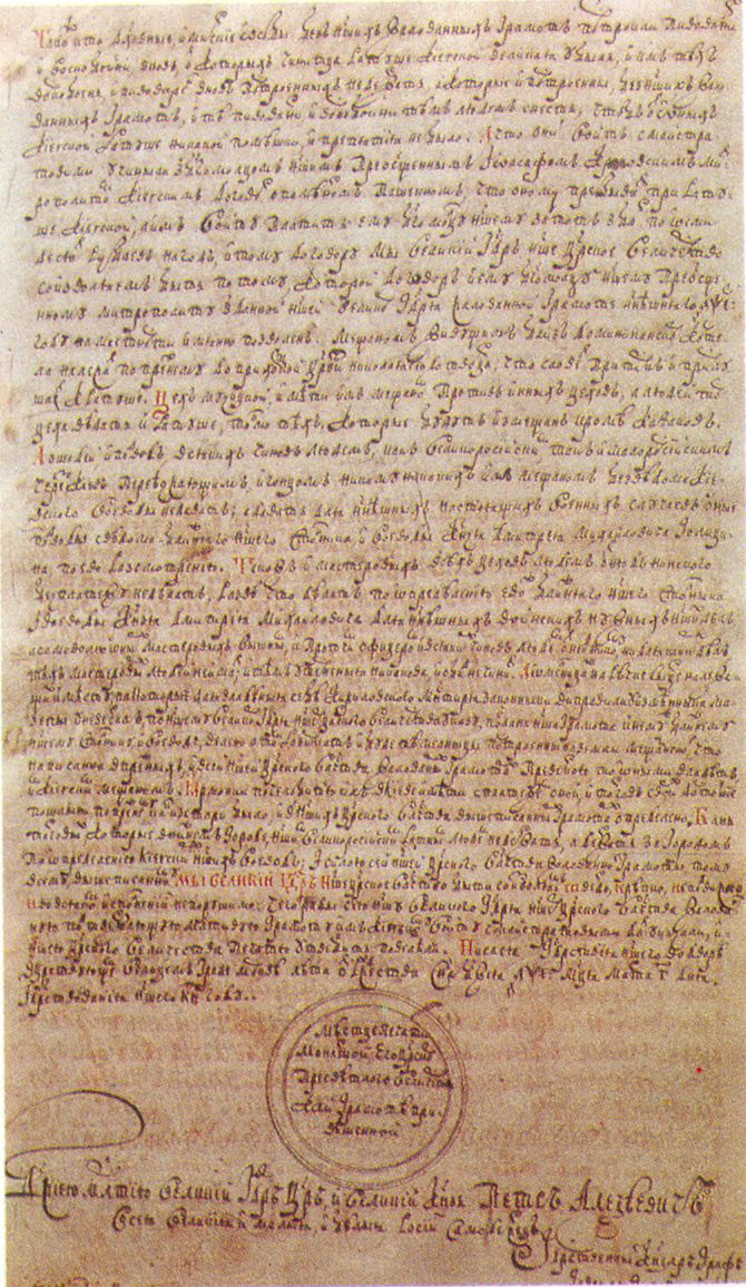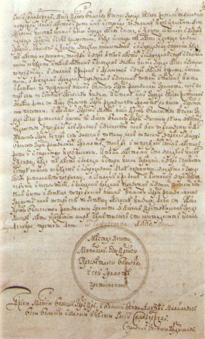 Фрагменти жалуваної Грамоти царя Петра I про підтвердження Києву маґдебургзького права 1710 р.