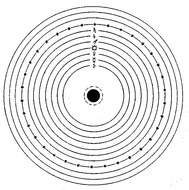 Хоча вперше система світобудови була запропонована Піфагором, Арістарх 8 та Філолай 9 виклали її набагато переконливіше, коли обнародували ідею про рух Землі на противагу руху Сонця. Проте називаємо цю [першу систему] птолемеївською, оскільки Пголемей, будучи видатним математиком, пояснив античним свою систему більш детально, обгрунтувавши її різними аргументами Щоб краще зрозуміти всі системи світу, розглянемо малюнки кожної з них зокрема. Тут зображена перша з них — система Птолемея. \287\