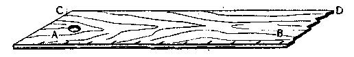 2. Лінійка — це інструмент, за допомогою якого креслять прямі лінії. Вона є нічим іншим, як подовженою дощечкою, або табличкою, зробленою з дерева або з іншого тривкого матеріалу, що має один або обидва боки цілком прямі, наприклад лінійка АВ [рис. 1 ]. А наскільки прямою є ця лінійка й з якого боку можна накреслити правильні прямі, ти можеш перевірити таким чином: нехай ми маємо лінійку АВ, вздовж боку якої CD накреслено пряму CD від точки С до точки D. Поверни лінійку так, щоб залишився той самий бік її угорі, точка С опинилася в точці D, а точка D — в точці С. Вздовж того самого боку лінійки — CD проведи пряму від точки С до точки D. І якщо ця друга лінія збіжиться з першою так, що обидві вони утворять одну пряму, то ми, не вагаючись, можемо застосувати цю лінійку для креслення прямих ліній. Якщо ж вони цілком не збіжаться, то цей бік CD не є цілком прямий, і його треба старанніше вирівняти 2,