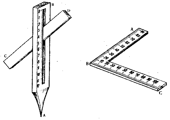 Тепер, користуючись згаданими вище інструментами, сконструюємо інші інструменти, за допомогою яких можна буде застосувати теореми загальної геометрії до вимірювання конкретних- предметів і здійснити ці вимірювання. Таких інструментів, виготовлених різними винахідниками, є чимало, й вони досить різноманітні.