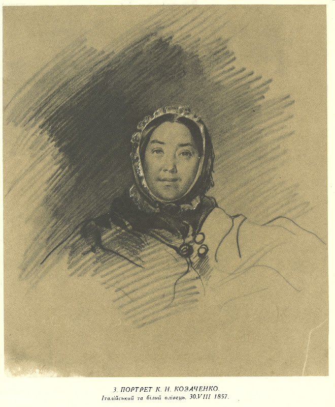 3. Портрет Катерини Никифорівни Козаченко. Тонований папір, італійський та білий олівець (28,6 × 25,1). [Н. п.] 30.VIII 1857.