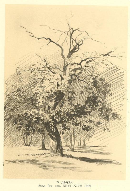 79. Дерева. Етюд. Папір, туш, перо (23 × 16,2). [Корсунь]. [28.VI — 12.VII 1859].