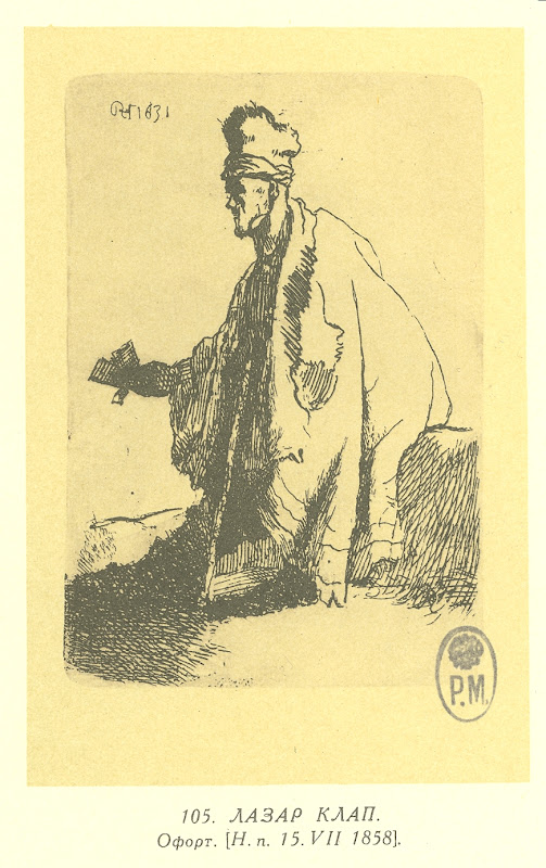 105. Лазар Клап. Папір, офорт 9,8 × 8,7; (13,8 × 9). [Пб.]. [Н. п. 15.VII 1858].