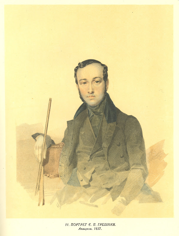 11. Портрет Євгена Павловича Гребінки. Брістольський картон, акварель (21,3 × 18,8). [Пб.]. 1837.