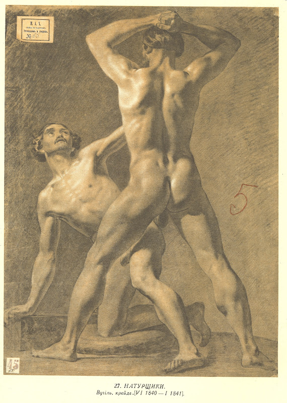 27. Натурщики. Тонований папір, вугіль, крейда (76 × 57). [Пб.]. [VI 1840 — І 1841].