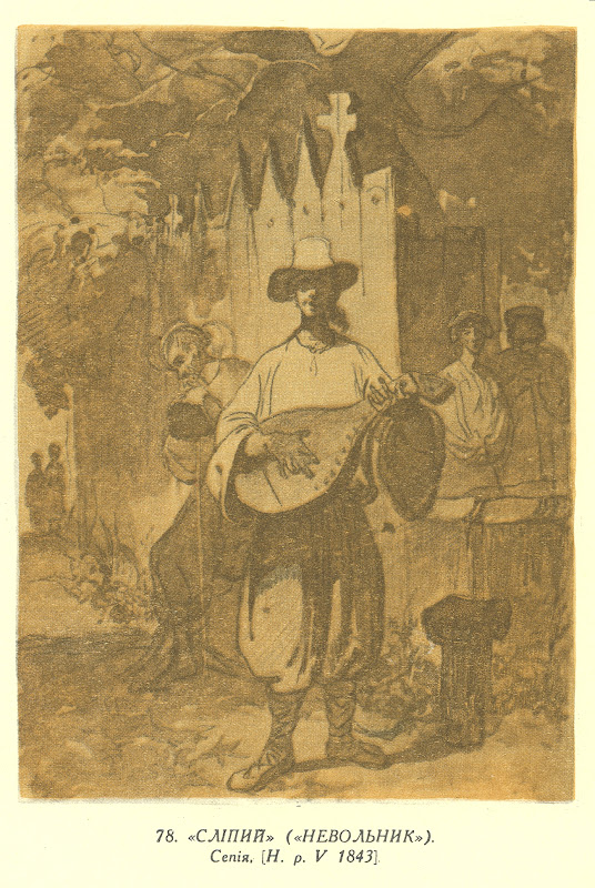 78. «Сліпий» («Невольник»). Папір, сепія (14,5 × 10,5). [Н. р. V 1843].