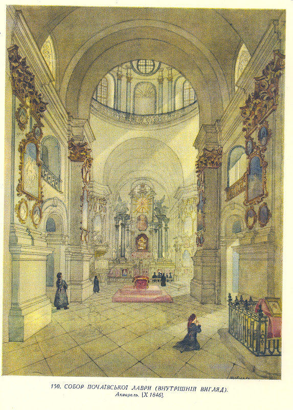 150. Собор Почаївської лаври (внутрішній вигляд). Папір, акварель (37,6 × 28,4). [Почаїв]. [X 1846].