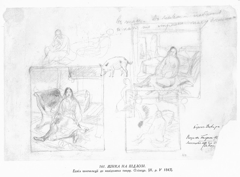 161. Між арк. 3 і 4. Жінка на підлозі. Ескіз композиції до невідомого твору. Олівець. [Н. р. V 1843].