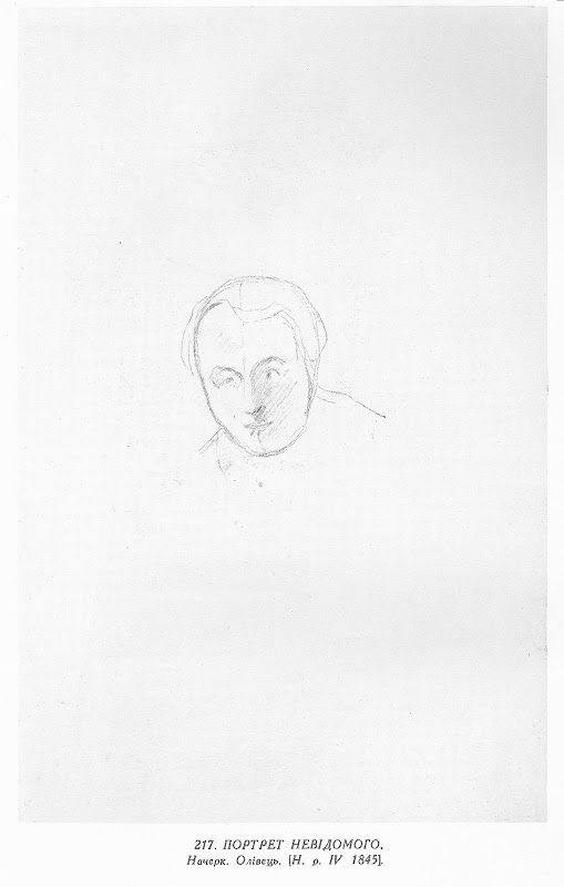 217. Зворот арк. 10. Портрет невідомого. Начерк. Олівець. [Н. р. IV 1845].