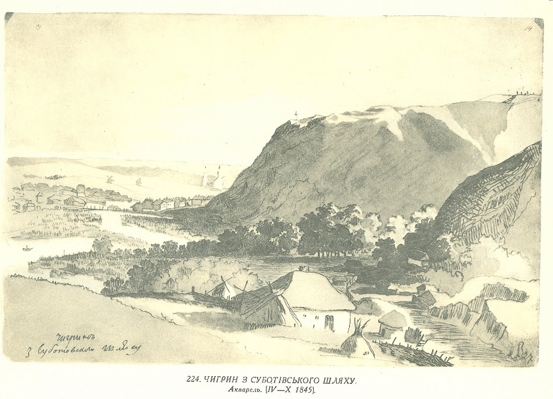 224. Арк. 14. Чигрин з Суботівського шляху. Акварель. [IV — X 1845].