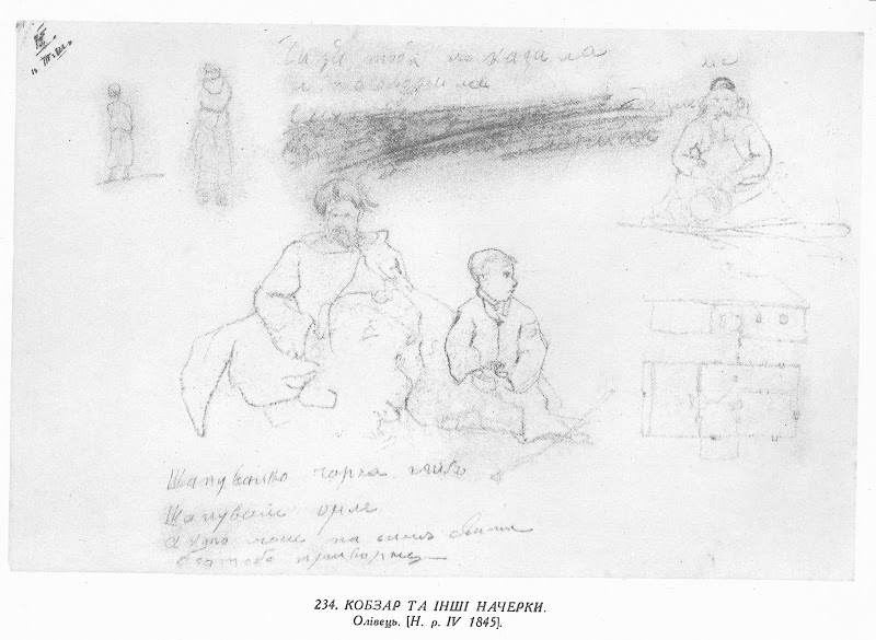 234. 3-я сторінка обкладинки. Кобзар та інші начерки. Олівець. [Н. р. IV 1845].