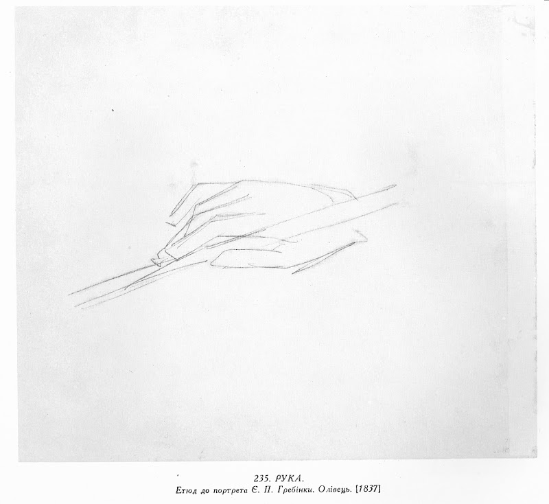 235. Рука. Етюд до портрета Є. П. Гребінки. Брістольський картон, олівець (21,3 × 18,8). [Пб.]. [1837].
