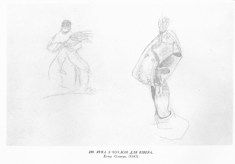 289. Рука з чохлом для ківера. Етюд до портрета юнака. Папір, олівець (14,5 × 24). [1843].