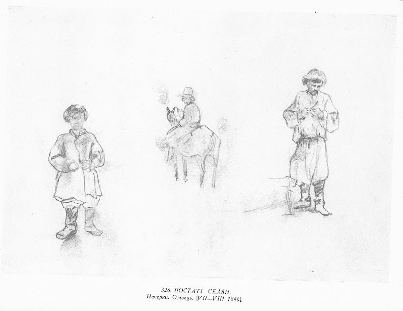 326. Постаті селян. Начерки. Папір, олівець (20,4 × 30,2). [VII — VIII 1846].