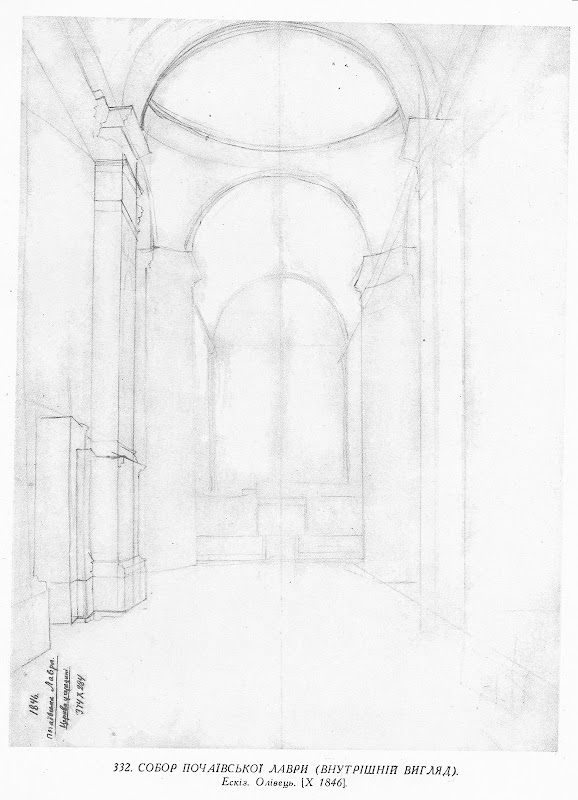 332. Собор Почаївської лаври (внутрішній вигляд). Ескіз. Папір, олівець (37,6 × 28,4). [Почаїв]. [X 1846].