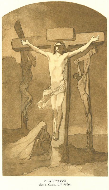 55. Розп’яття. Ескіз. Папір, сепія (19,6 × 11,8). [Оренбург]. [III 1850].