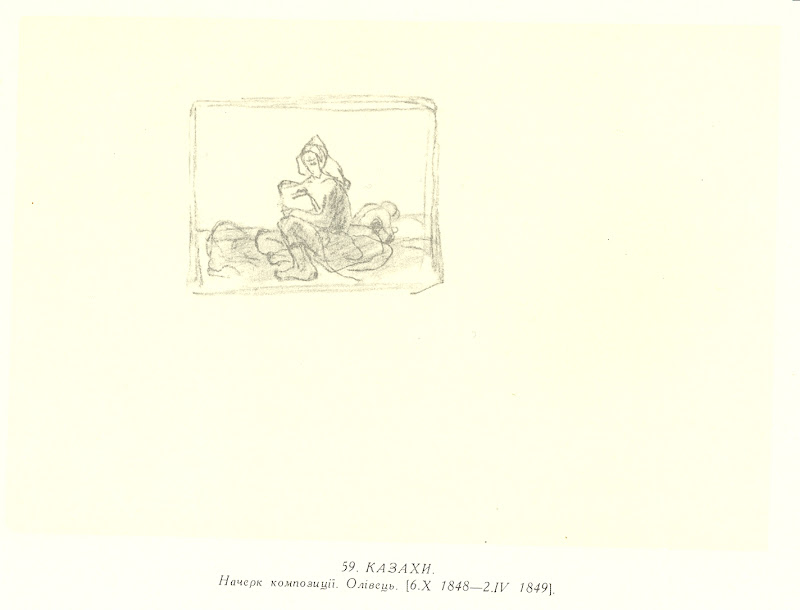 59. Зворот арк. 3. Казахи. Начерк композиції. Олівець. [6.Х 1848 — 2.IV 1849]. Датується часом перебування на Кос-Аралі (див. примітку до № 38).