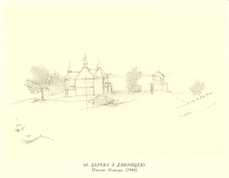 Зображення цієї ж церкви з заходу див. № 102. Див. також примітку до № 58. Датується часом перебування на Україні до першого арешту.