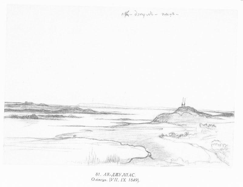 Зверху в центрі рукою Шевченка напис: ак-джулъ-пасъ.