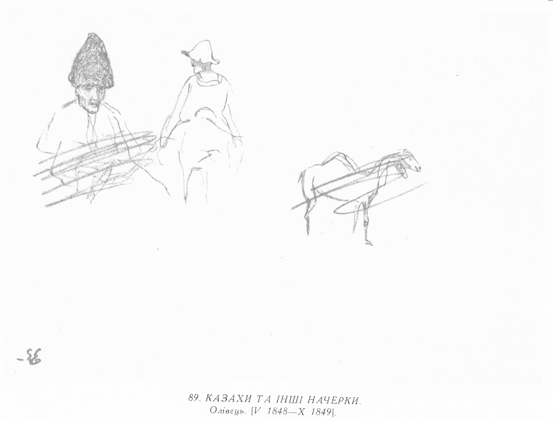 89. Арк. 35. Казахи та інші начерки. Олівець. [V 1848 — X 1849].