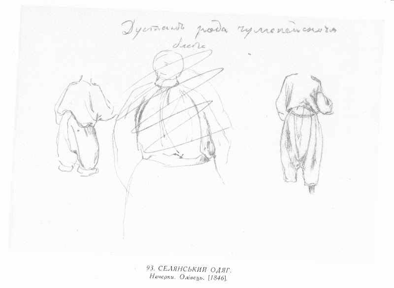 93. Зворот арк. 45. Селянський одяг. Начерки. Олівець. [1846].