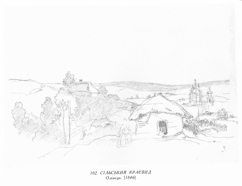 102. Зворот арк. 53. Сільський краєвид. Олівець. [1846].