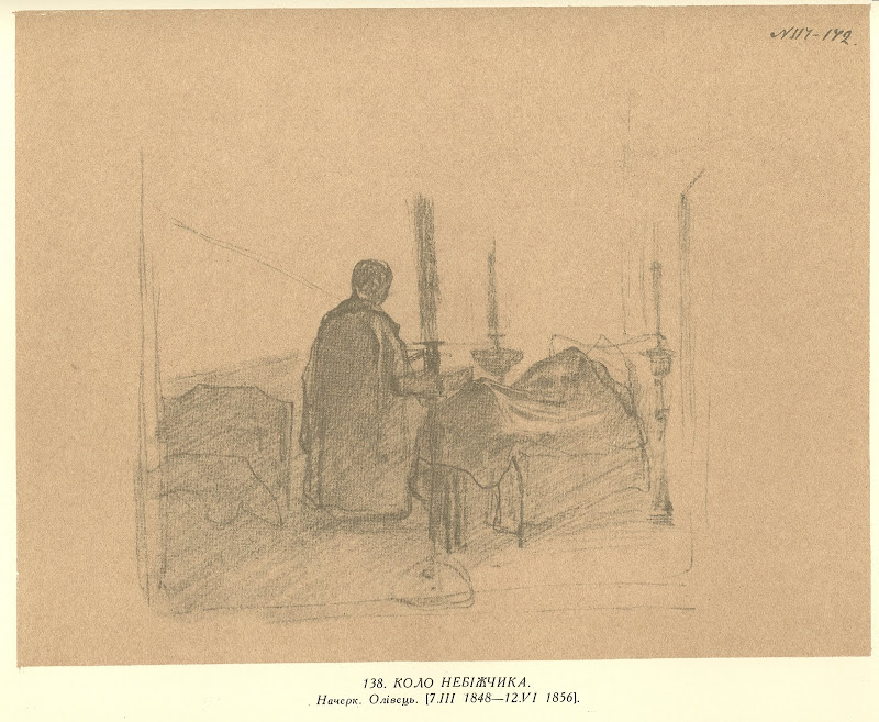 138. Коло небіжчика. Начерк. Тонований папір, олівець (19,4 × 22,5). [7.III 1848 — 12.VI 1856].