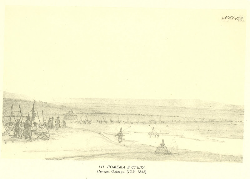 141. Пожежа в степу. Начерк. Папір, олівець (14,8 × 23,2). [12.V 1848].