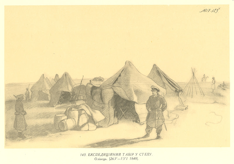 143. Експедиційний табір у степу. Папір, олівець (14,7 × 23,2). [26.V — 1.VI 1848].