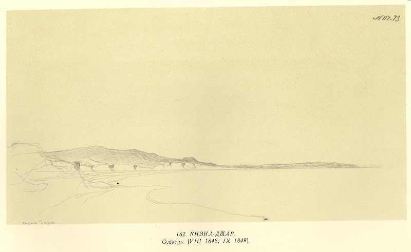 Зліва внизу олівцем рукою Шевченка напис: Кызылъ джаръ. Справа вгорі чорнилом позначено: № 117 — 73.