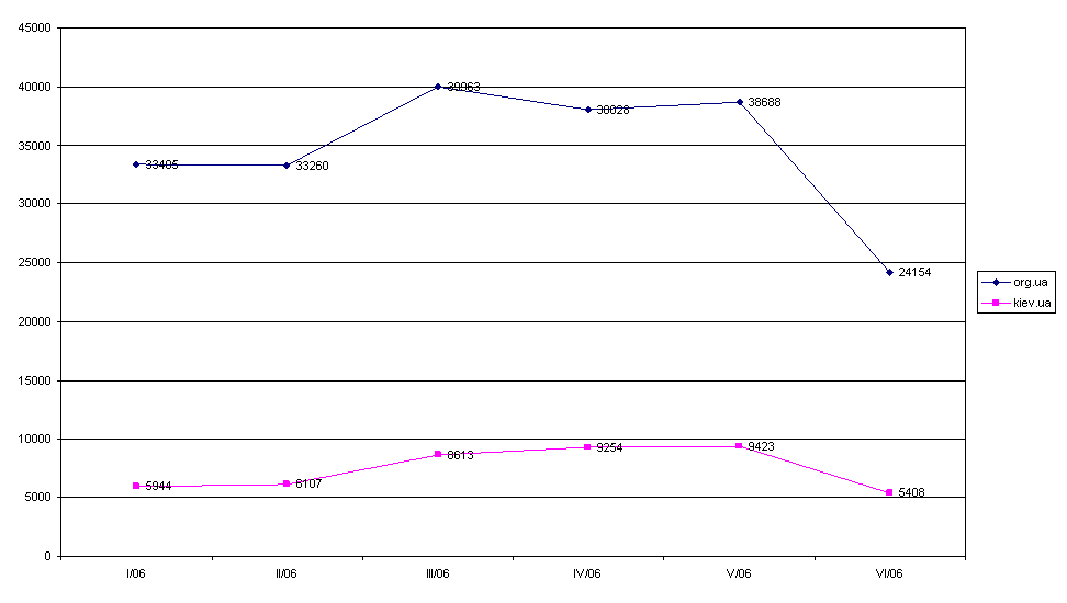 Графік відвідуваності сайту litopys.org.ua та дзеркала за першу половину 2007 року.