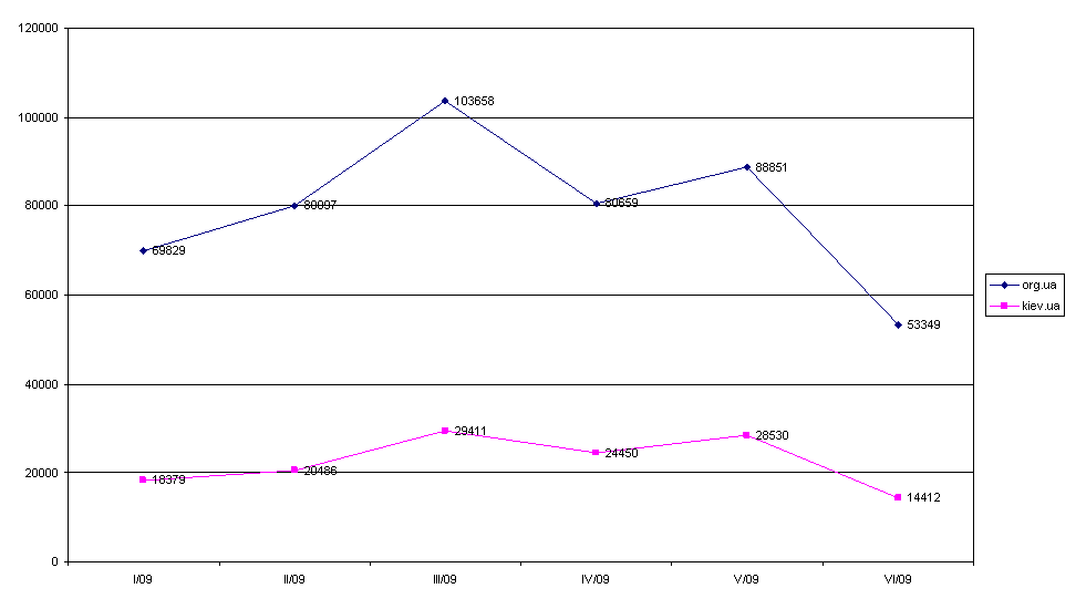 Графік відвідуваності сайту litopys.org.ua та дзеркала за першу половину 2009 року.