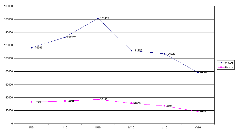 Графік відвідуваності сайту litopys.org.ua та дзеркала за першу половину 2010 року.