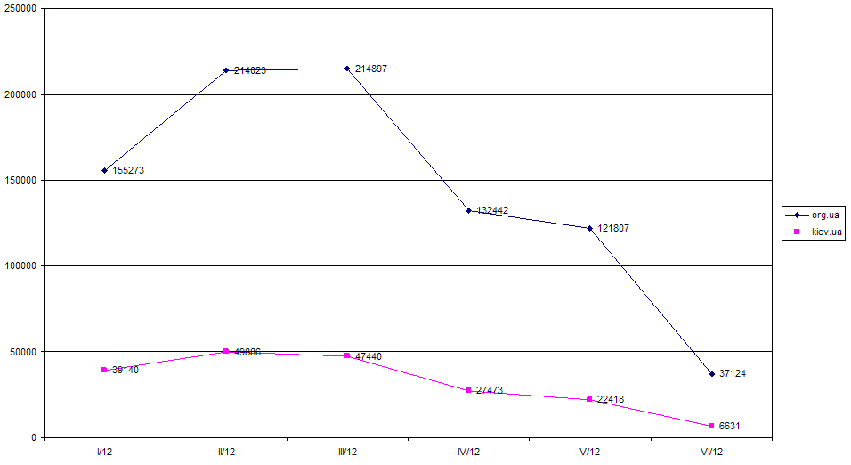 Графік відвідуваності сайту litopys.org.ua та дзеркала за першу половину 2012 року.