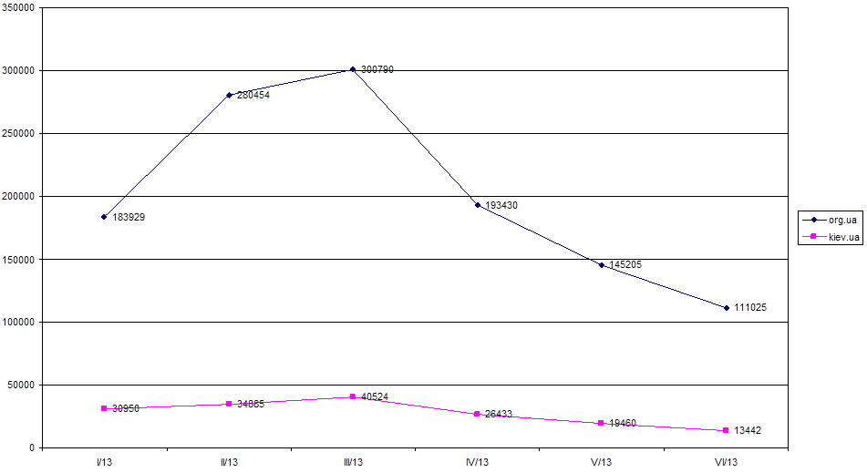 Графік відвідуваності сайту litopys.org.ua та дзеркала за першу половину 2013 року.