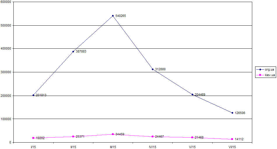 Графік відвідуваності сайту litopys.org.ua та дзеркала за першу половину 2015 року.