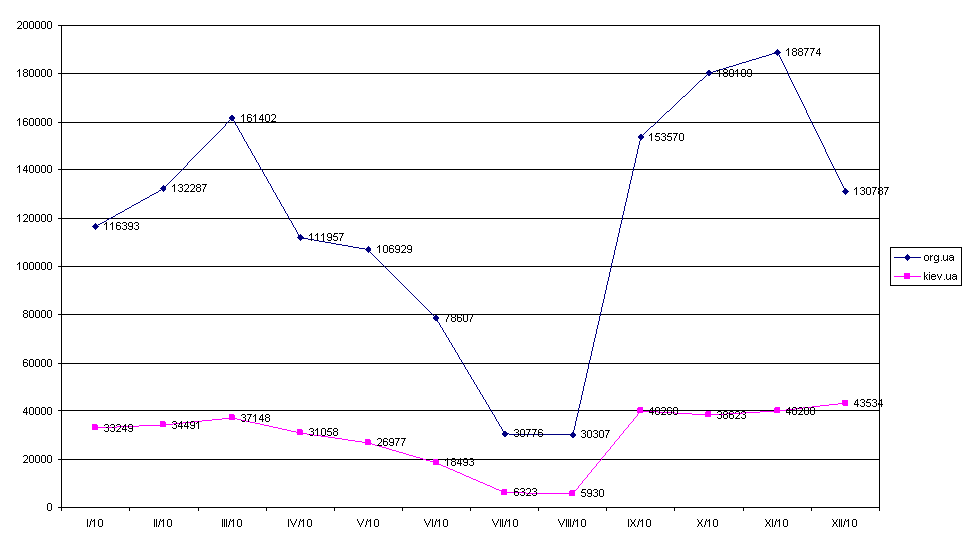 Графік відвідуваності сайту litopys.org.ua та дзеркала за 2010 рік.
