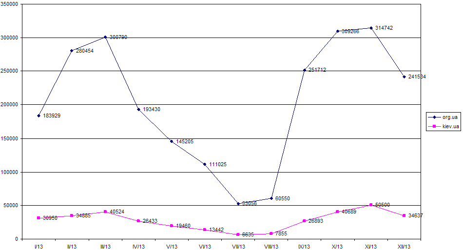 Графік відвідуваності сайту litopys.org.ua та дзеркала за 2013 рік.
