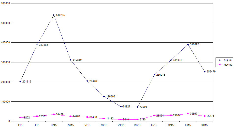 Графік відвідуваності сайту litopys.org.ua та дзеркала за 2015 рік.