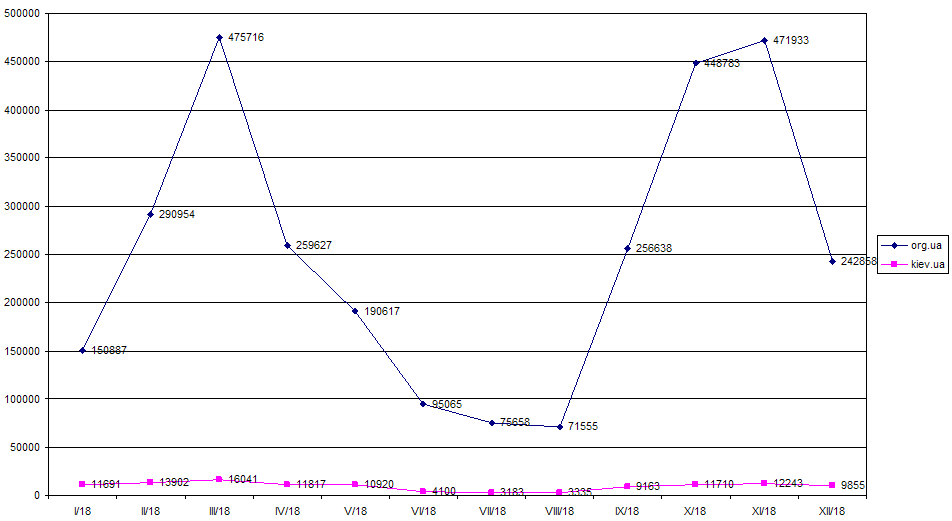 Графік відвідуваності сайту litopys.org.ua та дзеркала за 2018 рік.