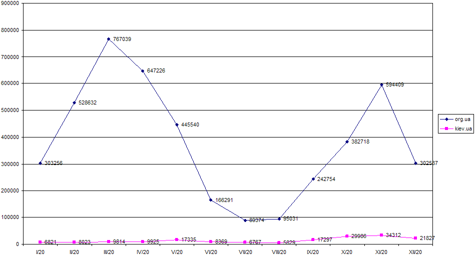 Графік відвідуваності сайту litopys.org.ua та дзеркала за 2020 рік.